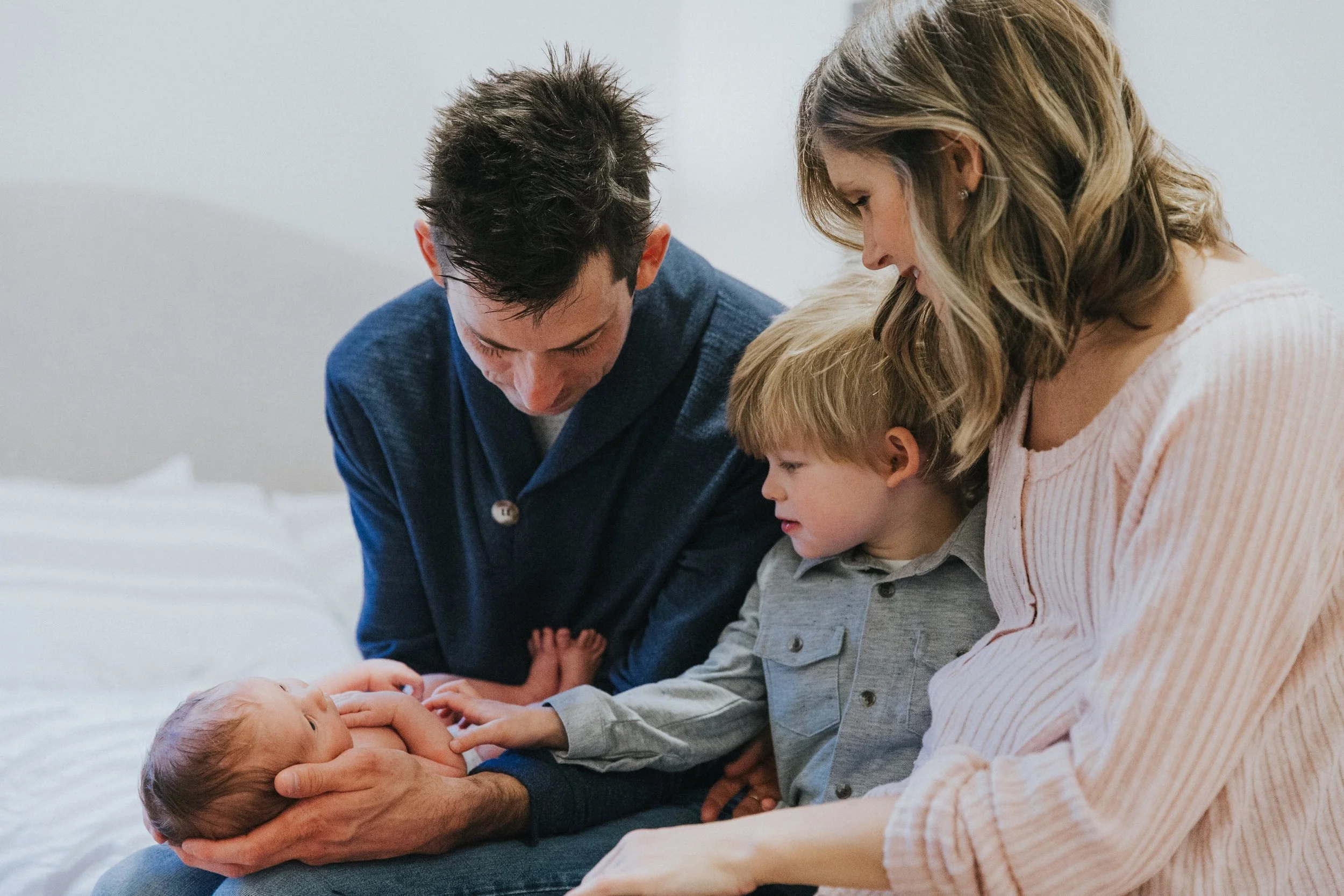 Dan holds newborn son Adrian with wife Kelly and son Miller (3)